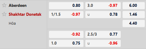 Aberdeen đang trải qua chuỗi phong độ kèo rất tệ khi trắng tay trong 6 trận mở kèo gần nhất, cho thấy khó tạo niềm tin cho nhà đầu tư. Trong khi đó, Shakhtar Donetsk cũng không quá ổn định khi chỉ thắng cược 2/5 trận trước đó, nhưng đáng chú ý là ở trận kèo gần nhất họ đã mang về lợi nhuận, cho thấy khả năng hồi phục và tạo bất ngờ trước Aberdeen.
