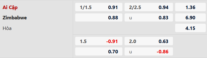 Phong độ gần đây của Zimbabwe cũng chẳng có gì đặc biệt nhưng điều cần lưu ý là 3/4 thất bại mới nhất đều ở mức tối thiểu 1 bàn. Ngược lại, Ai Cập đều gây thất vọng cho giới mộ điệu ở toàn bộ 6 trận gần đây được xếp mức từ 1 bàn trở lên. Xem ra dù Zimbabwe không dễ làm nên chuyện (có điểm) nhưng một thất bại sát nút thì không đến mức quá sức.