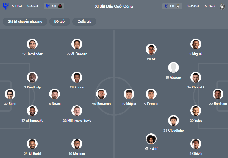 Al Hilal: Bouabre, Al-Dawsari, Al-Yami, Akcicek chấn thương.