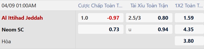 Mốc tài xỉu 2 3/4 khá phù hợp với thế trận cởi mở khi cả hai đều không chịu áp lực quá lớn. Al Ittihad có thể chơi chủ động, còn Neom cũng sẵn sàng đáp trả. Khả năng trận đấu xuất hiện từ 3 bàn trở lên là khá sáng.