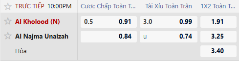 Với khoảng cách cực lớn về phong độ và điểm số tại SPL (9 điểm so với 0 điểm), Al-Kholood được xếp kèo trên với tỷ lệ 1/2 bàn. Đây là mức chấp hoàn toàn hợp lý khi Al Najma đang có hàng thủ tệ nhất giải đấu. Đội chủ nhà sẽ không gặp nhiều khó khăn để tạo ra cách biệt 2 bàn trở lên, do đó, đặt niềm tin vào Al-Kholood là quyết định sáng suốt.