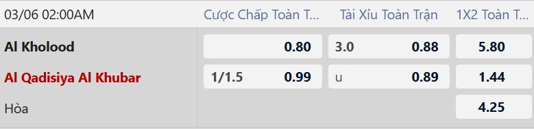 Lựa chọn tốt nhất: Al Kholood +1 1/4 cả trận