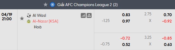 Mức chấp 1 1/4 bàn phản ánh đúng sự chênh lệch giữa hai đội. Dù Al Wasl có phong độ tốt trên sân nhà, nhưng trước một Al-Nassr đang thăng hoa, rất khó để đội chủ nhà tạo nên bất ngờ.