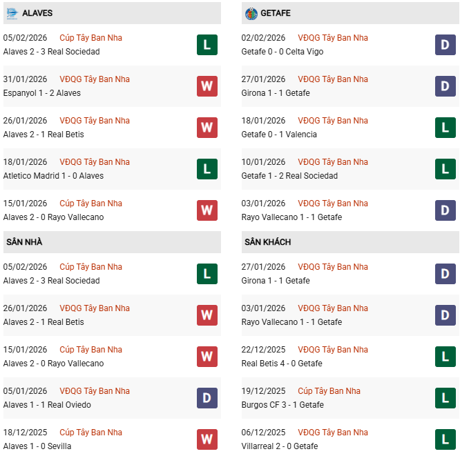 - Trên sân nhà, Alaves thắng 4, thua 2 trước Getafe.