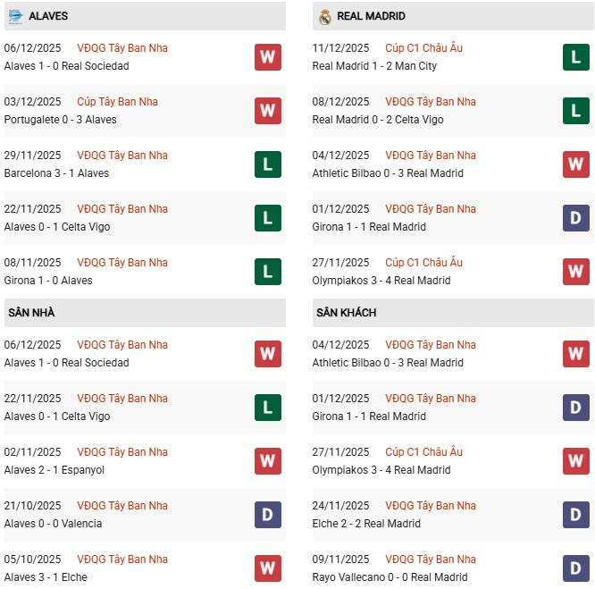 Nhận định Alaves vs Real Madrid, 03h00 ngày 15/12, vòng 16 VĐQG Tây Ban Nha, sân Mendizorroza. Real Madrid đang có kết quả tốt ở sân khách và có thực lực mạnh hơn nhiều so với Alaves.
