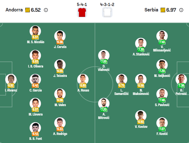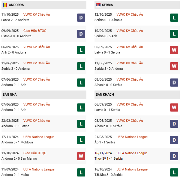 Về phần mình, Serbia đúng là vừa thua 2 trận liên tiếp, nhưng chí ít thì họ cũng đã thu về được 7 điểm sau 5 vòng đầu. Đội bóng này hiện kém Albania đứng nhì bảng 4 điểm, nhưng lại đá ít hơn 1 trận. Điều đó đồng nghĩa với việc, chỉ cần vượt qua Andorra là họ sẽ thu hẹp được đáng kể khoảng cách với Albania.