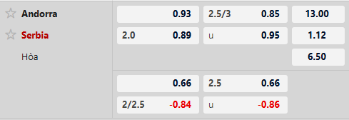 Serbia được đánh giá cao hơn rất nhiều ở trận đấu này với kèo chấp lên đến 2 hòa. Serbia đang rất cần một chiến thắng để níu kéo hy vọng được dự ngày hội bóng đá lớn nhất hành tinh. Chỉ phải gặp Andorra thua xa trên mọi phương diện, nhiều khả năng họ sẽ kiếm trọn 3 điểm khi ra về.