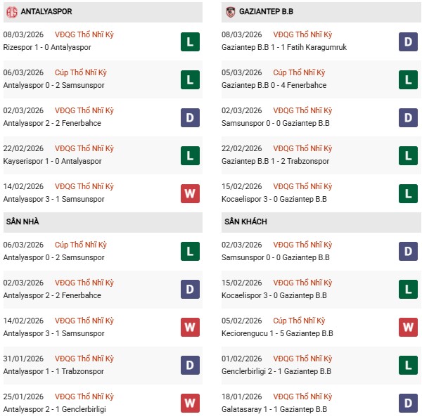 - Trên sân nhà, Antalyaspor thắng 4, hòa 5 trước Gaziantep.