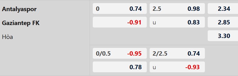 Mức kèo đồng banh cho thấy trận đấu được đánh giá khá cân bằng giữa hai đội. Antalyaspor có lợi thế sân nhà nhưng phong độ gần đây của họ lại không quá thuyết phục. Trong khi đó, Gaziantep dù đang trải qua chuỗi trận không thắng nhưng lối chơi của họ vẫn khá chắc chắn. Với sự cân bằng về phong độ và vị trí trên BXH, đây nhiều khả năng sẽ là trận đấu giằng co và khó đoán.
