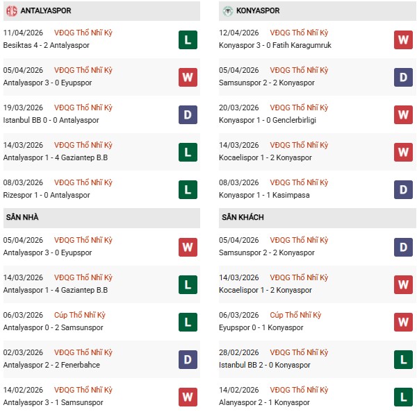 - Trên sân nhà, Antalyaspor thắng 3, thua 1 trước Konyaspor.