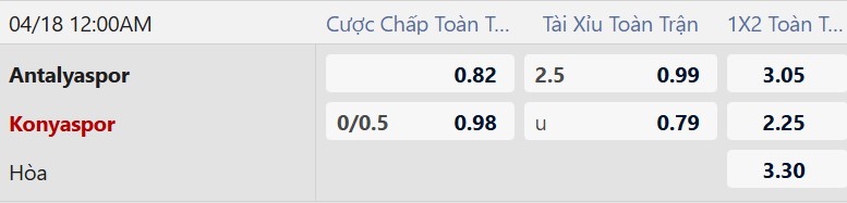 Konyaspor nằm cửa trên với mức chấp 1/4 bàn ngay trên sân khách là minh chứng rõ nét cho sự chênh lệch về phong độ hiện tại. Antalyaspor đang rất khát điểm nhưng lối chơi rời rạc và hàng thủ hay mắc sai lầm khiến họ khó đứng vững trước một Konyaspor đang chơi cực kỳ gắn kết. Trong bối cảnh đội chủ nhà đang khủng hoảng niềm tin, việc đặt niềm tin vào đội khách đang có chuỗi bất bại kéo dài là lựa chọn an toàn hơn.