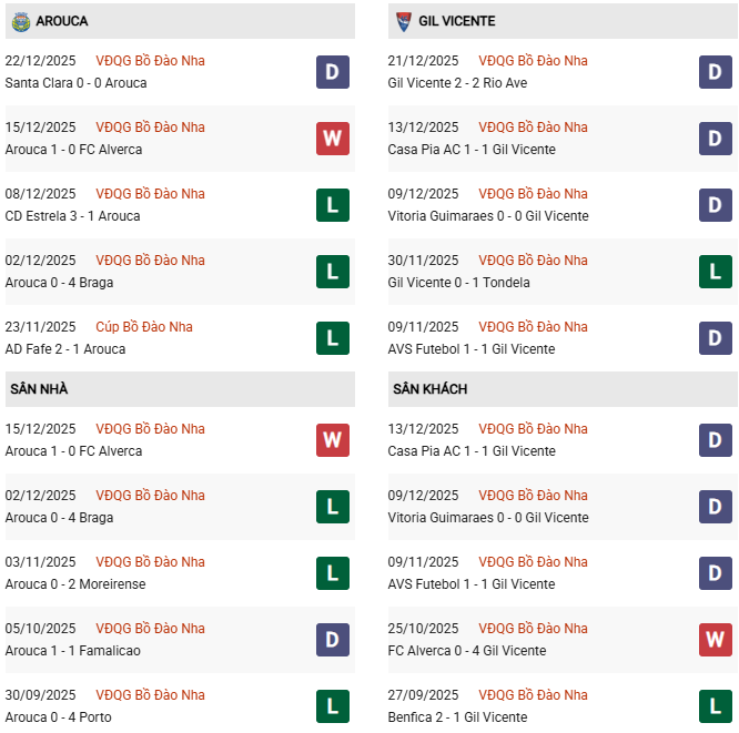 - Trên sân nhà, Arouca thắng 6, hòa 2 trước Gil Vicente.