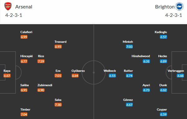 - Siêu máy tính Opta đánh giá tỷ lệ thắng của Arsenal đạt 69,5%; còn tỷ lệ chiến thắng của Brighton chỉ là 13,4%.