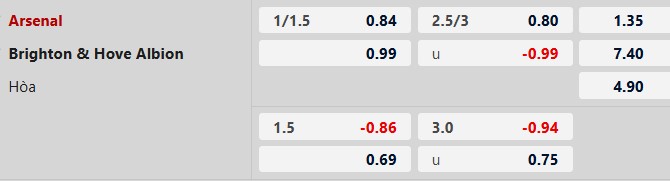 Chẵn bàn thắng: 6/8 cuộc đối đầu gần nhất, 8/11 trận sân nhà vừa qua của Arsenal và 7/10 trận gần đây của Brighton đều khép lại với tổng bàn thắng là chẵn. Hơn nữa, 16/19 chuyến làm khách gần đây của Brighton cũng có tổng bàn thắng chia hết cho 2.