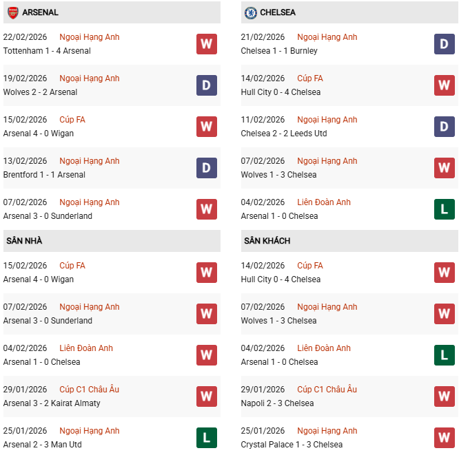 Xét về phong độ, Pháo thủ đang khiến những người ủng hộ mình hết sức yên tâm với chuỗi 8 trận bất bại liên tiếp trên mọi đấu trường, trong đó có 6 chiến thắng. Chẳng những có lợi thế sân nhà trước Chelsea, đội bóng của HLV Mikel Arteta còn được lịch sử ủng hộ.