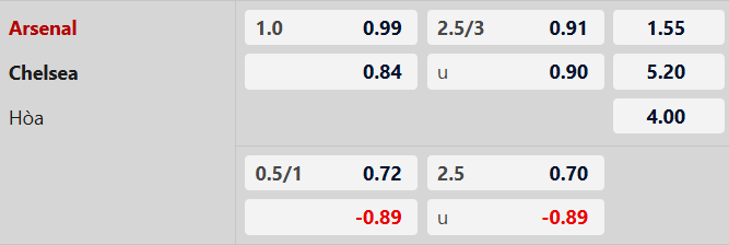 Tỷ số chẵn: Cả 4 trận gần đây của Chelsea đều kết thúc với tỷ số chẵn. 3/4 trận gần nhất của Arsenal cũng có số bàn thắng chia hết cho 2.