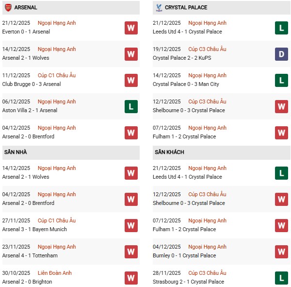 Arsenal đang có tinh thần hưng phấn, lại có nhiều lợi thế về lực lượng sân nhà, nên nhiều khả năng sẽ giành chiến thắng đậm trước Crystal Palace rạng sáng ngày 24/12 tới để vào bán kết League Cup 2025/26.