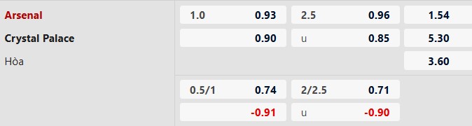 Lẻ bàn thắng: 5/7 cuộc đối đầu gần nhất, 4 trận vừa qua của Arsenal và 7/8 trận gần đây của Palace đều có tổng bàn thắng là lẻ. Ngoài ra, 4/5 cuộc đụng độ gần đây tại Emirates và 9/10 chuyến làm khách vừa qua của Crystal Palace đều khép lại với tổng bàn thắng không chia hết cho 2.
