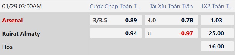 Lựa chọn tốt nhất: Arsenal -3 1/4 cả trận