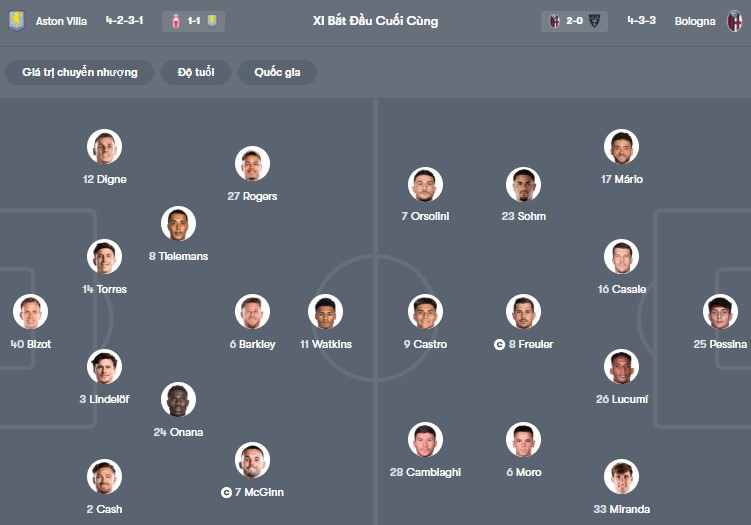 Aston Villa đã tạo ra lợi thế cực lớn sau chiến thắng 3-1 ngay trên sân Renato Dall’Ara ở lượt đi. Đáng nói, đó là trận đấu mà thầy trò HLV Unai Emery không cần kiểm soát bóng quá nhiều (chỉ 42%) nhưng lại cực kỳ hiệu quả trong khâu dứt điểm, ghi 3 bàn chỉ sau 8 lần tung ra cú sút. Bản lĩnh và sự già dơ tại đấu trường châu Âu đang giúp đại diện nước Anh tiến rất gần tới tấm vé vào bán kết.