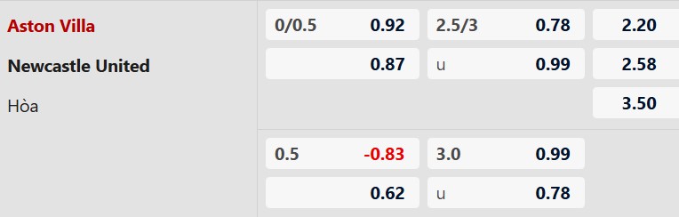 Lẻ bàn thắng: 6/8 trận gần đây của Aston Villa kết thúc với tổng bàn thắng là lẻ. Kịch bản lẻ bàn thắng cũng diễn ra ở 3/4 trận vừa qua của Newcastle.