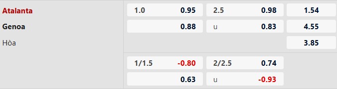 3 lần đối đầu đã qua giữa đôi bên xuất hiện tối thiểu 5 pha lập công. Cả 4 trận gần nhất của Genoa cũng chứng kiến ít nhất 3 bàn thắng. Khi 3/4 trận gần đây của Atalanta có kịch bản tương tự, màn so tài sắp tới giữa đôi bên được dự đoán sẽ có từ 3 bàn thắng trở lên.