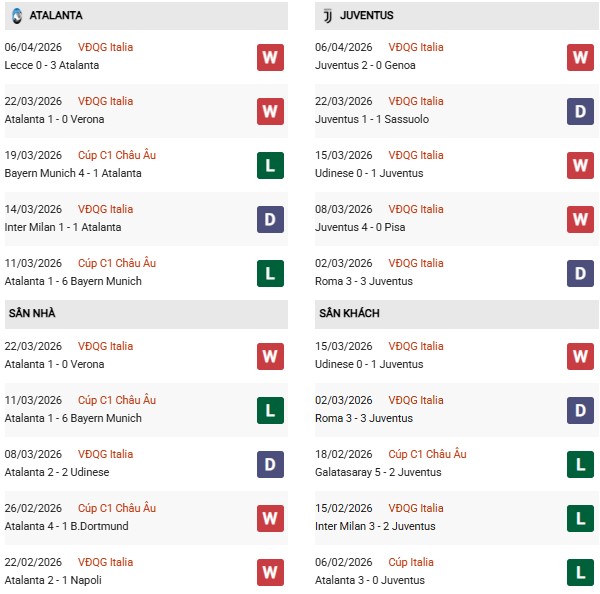 - Trên sân nhà, Atalanta thắng 2, thua 5 trước Juventus.