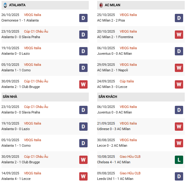 Với chuỗi trận bất bại vẫn đang được giữ vững, Milan hướng tới sân Atalanta với sự tự tin cao độ và quyết tâm giành trọn 3 điểm lần đầu tiên sau 4 năm. Bên cạnh đó, Atalanta thua châu Á 4 trận gần nhất. Ngoài ra, Atalanta thua châu Á 5/7 trận sân nhà chính thức vừa qua.