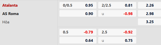 Atalanta thắng theo châu Á: Mùa này Roma có thành tích kém trước các đối thủ mạnh, họ đã thua Juventus, Napoli, Milan và Inter ở Serie A. Atalanta thắng theo châu Á 5/7 trận chính thức vừa qua với tỷ lệ châu Á 1/4 đến 1 1/4 bàn. Ngoài ra, Atalanta thắng và thắng theo châu Á 5/6 lần gần nhất chạm trán Roma trên sân nhà. Atalanta đang kém Roma tới 11 điểm và 6 bậc trên BXH nên việc Atalanta nhường 1/4 bàn là khá sâu, rất có thể dụ NHM cổ vũ cho Roma. Atalanta sẽ giành 3 điểm.