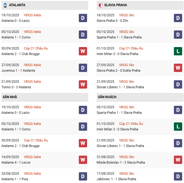 Vì vậy, chuyến hành quân đến sân Atalanta tuần này được xem là thử thách thực sự với thầy trò HLV Jindrich Trpisovsky. Họ cần chấm dứt chuỗi 4 trận liên tiếp tịt ngòi trên sân khách ở đấu trường châu Âu. Ngoài ra, Slavia Praha cũng không có được phong độ tốt trước khi bước vào trận đấu này. Bởi lẽ, qua 3 trận ra sân gần nhất, đại diện của CH Séc không hưởng niềm vui với 2 trận hòa và 1 trận thua.