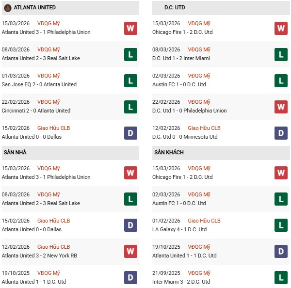 - Trên sân nhà, Atlanta thắng 6, thua 2 trước DC United.