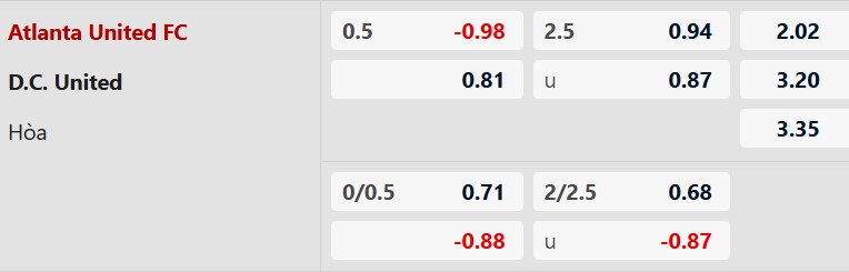 Thông tin tỷ lệ kèo Atlanta vs DC United: