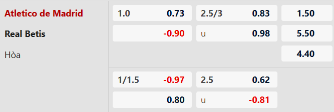 Tối thiểu 3 bàn cả trận: 7/9 trận sân nhà của Atletico có tối thiểu 3 bàn. 5/7 trận vừa qua của Betis cũng chung diễn biến.