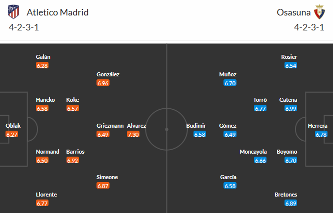 - Atletico Madrid thắng 8, thua 2 trong 10 trận gặp Osasuna gần đây.