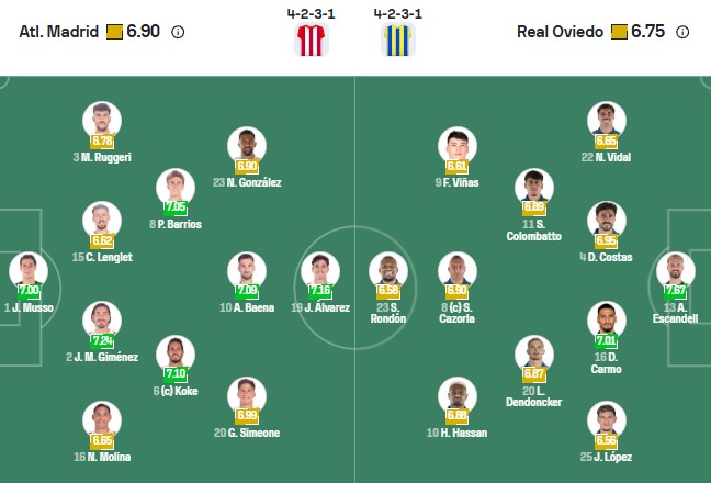 Ở trận đấu tới, cơ hội giành 3 điểm của Atletico là rất lớn khi họ chỉ phải tiếp đội bét bảng là Real Oviedo. Trái ngược với Atletico, Oviedo bước vào trận này với chuỗi 7 trận không thắng. Dù vậy, đoàn quân của Luis Muriel Carrion đang cho thấy sự cải thiện khi hòa 4/5 trận gần đây.