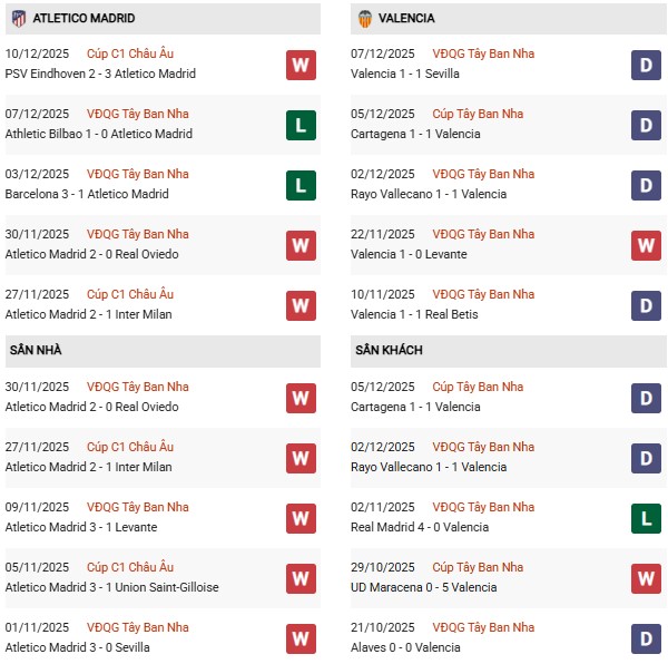 Trong 4 trận gần đây tại La Liga, Los Che hòa Real Betis, Rayo Vallecano và Sevilla, xen giữa là chiến thắng trước Levante. Điều này giúp họ có đôi chút tự tin dù phải làm khách tại Metropolitano.