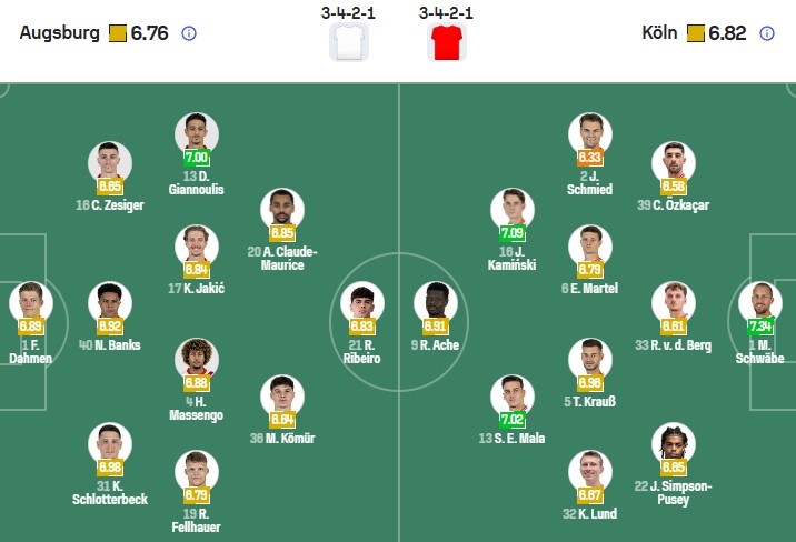 - Trên sân nhà, Augsburg thắng 3, thua 3 trước Cologne.
