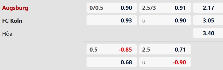 Lẻ bàn thắng: 4/5 trận gần nhất của Augsburg có tổng bàn thắng không chia hết cho 2. Chưa hết, 6/10 trận vừa qua của Cologne chứng kiến điều tương tự.