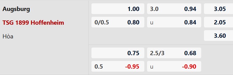 | 01h30 | Augsburg | VS | Hoffenheim |