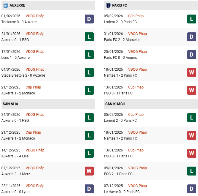 - Trên sân nhà, Auxerre thắng 3, thua 2 trước Paris FC.
