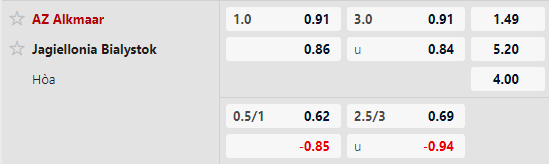 AZ Alkmaar ghi bàn khá đều đặn nhưng hàng thủ Jagiellonia đang để lọt lưới rất nhiều (trung bình 2 bàn/trận gần đây).