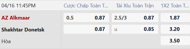 AZ Alkmaar chấp 1/2 bàn là mức kèo phản ánh lợi thế sân nhà và động lực buộc phải thắng. Dù khả năng đi tiếp là rất khó, AZ vẫn có cơ sở để giành chiến thắng danh dự khi họ toàn thắng 5 trận sân nhà gần nhất. Trong khi đó, Shakhtar nhiều khả năng sẽ không bung hết sức khi đã nắm lợi thế lớn.