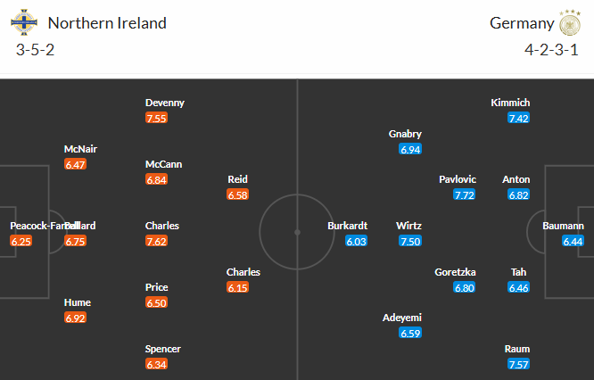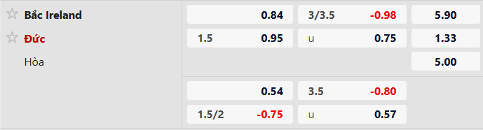Hàng công của Những Cỗ Xe Tăng đã dần tìm lại được cảm giác với 7 bàn ở 2 lượt trận vừa qua. 2 lần gần nhất chạm mặt Bắc Ireland, Đức cũng có cho mình đến 9 pha lập công. Với tỷ lệ tài xỉu 3 1/4 là rất vừa vặn dành cho sự xuất hiện của kèo Tài sau 90 phút với một thắng lợi áp đảo dành cho các cầu thủ khách.