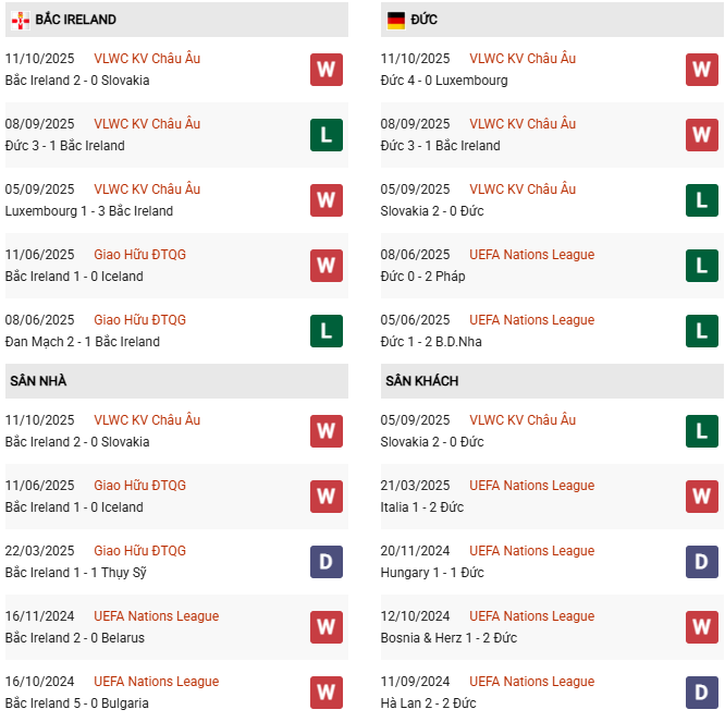 - Trên sân nhà, Bắc Ireland toàn thua 4 trận trước Đức.