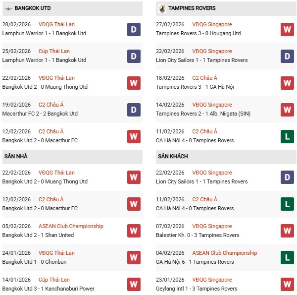 - Trên sân nhà, Bangkok United thắng cả 2 trận trước Tampines.