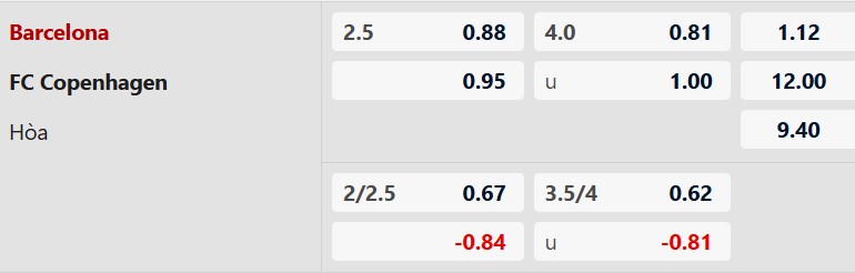 Ít nhất 3 bàn: 5/6 trận đấu trước đó của Barca có ít nhất 3 bàn thắng. Bên cạnh đó, 7/10 trận sân nhà vừa qua của Barca cùng 6/9 trận sân khách vừa qua của Copenhagen cũng có ít nhất 3 lần lưới rung.