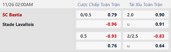Kèo tài xỉu được đưa ra ở mức 2 hòa, thấp hơn so với mặt bằng chung của Ligue 2. Điều này phản ánh đúng thực tế: cả Bastia và Laval đều có hàng công kém hiệu quả, trong khi thế trận dự kiến sẽ chặt chẽ và thận trọng. Khả năng cao trận đấu diễn ra với thế trận nghèo nàn bàn thắng.