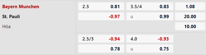 Việc không thắng trong 4 trận sân khách gần nhất càng khiến St. Pauli bị đánh giá thấp hơn nhiều so với đội chủ nhà. Kèo châu Á niêm yết ở mức 2 1/2 bàn nghiêng về phía Bayern Munich. Lịch sử đối đầu cũng đứng về phía Bayern với 5 chiến thắng trong 6 lần gặp nhau, cùng trung bình gần 4 bàn/trận, cho thấy đây là cặp đấu thường rất cởi mở. Vì vậy, Hùm xám xứ Bavaria hứa hẹn trút giận lên St. Pauli bằng cơn mưa bàn thắng.