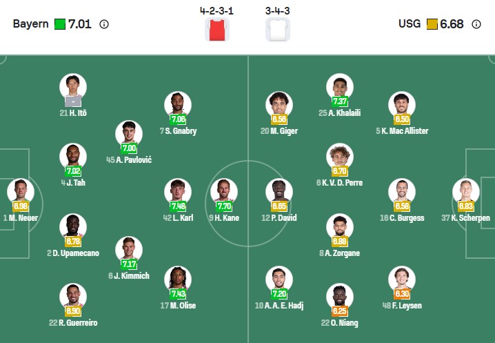 Hai đội cùng ghi bàn: Với hàng công đang thi đấu bùng nổ từ đầu mùa giải, việc Bayern Munich chọc thủng lưới Union SG là điều không khiến nhiều người bất ngờ, vấn đề là việc Hùm xám sẽ ghi bao nhiêu bàn. Tuy nhiên, ở chiều ngược lại sự tập trung nơi hàng thủ là điều vẫn đang khiến HLV Vincent Kompany đau đầu khi để thủng lưới 11/13 trận chính thức gần đây trên mọi đấu trường. Với sự hớ hênh này, hàng công Union SG hoàn toàn có thể tìm kiếm được đường vào khung thành Manuel Neuer.