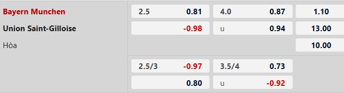 Bayern Munich thua châu Á hiệp 1: Trên sân nhà, Bayern đang để thua châu Á 3 và hòa 1 trong 4 trận đấu gần đây trong hiệp 1 ở mọi đấu trường mình tham dự. Với Union SG, đội khách thắng châu Á 3 trong 4 trận ra quân vừa qua ở hiệp 1.